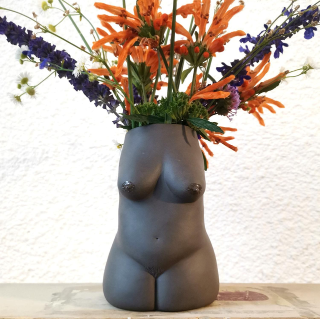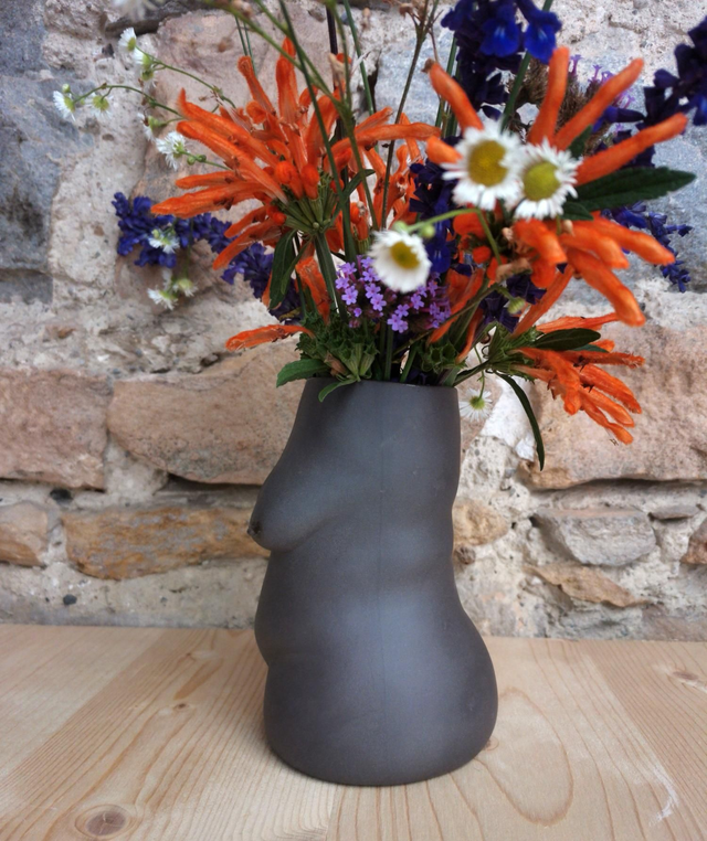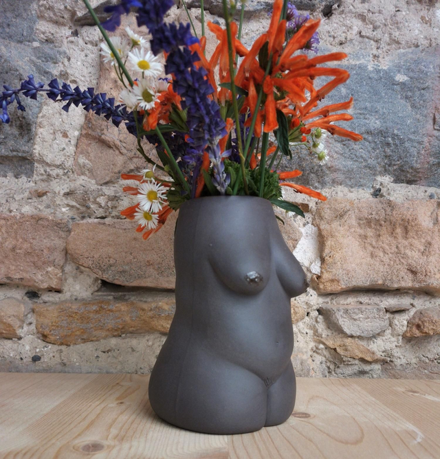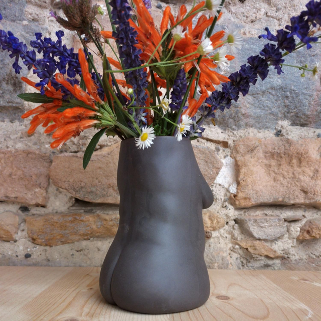 Vase en grès noir, émaillé à l'intérieur, brut à l'extérieur. Hauteur 14cm diamètre 8cm.
